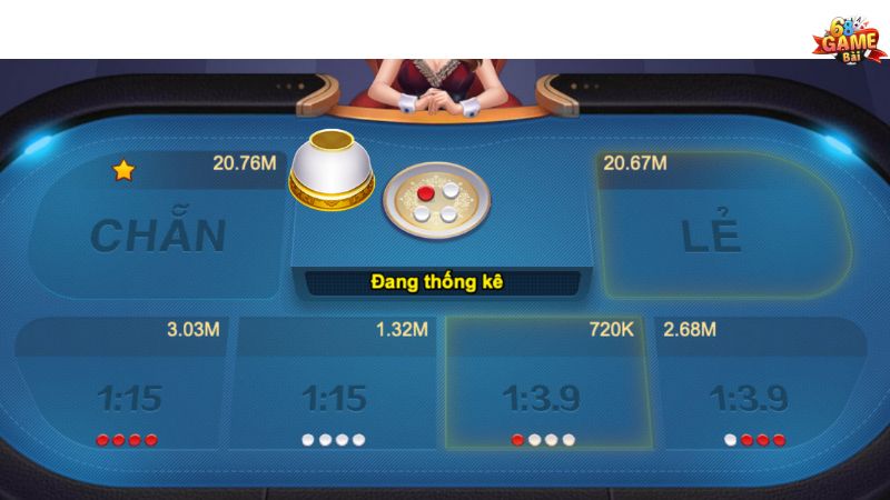 • Đặt cược: Người chơi đặt cược vào một trong các tùy chọn có sẵn như “chẵn” hoặc “lẻ”, hoặc “hòa”.