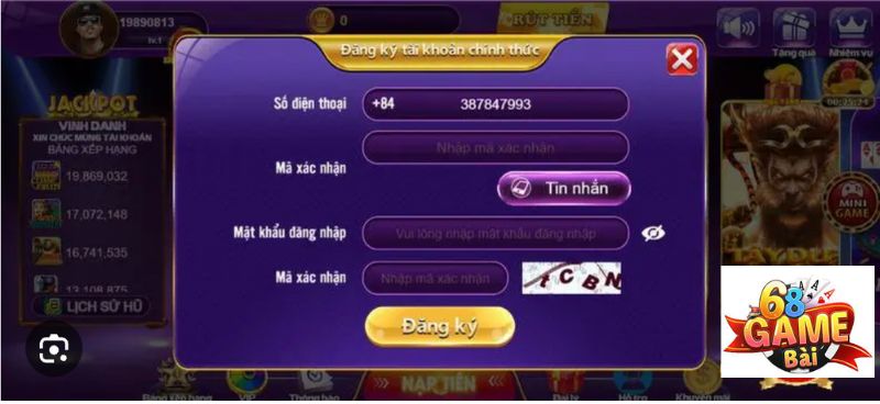 Thao tác đăng ký tài khoản tại 68 Game Bài