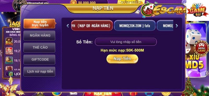 Để chơi các trò chơi tại đây, bước tiếp theo trong cách chơi 68 Game Bài đó chính là cần nạp tiền vào tài khoản của mình. Nhà cái này hiện đang hỗ trợ nhiều phương thức nạp tiền khác nhau như chuyển khoản ngân hàng, thẻ cào điện thoại, ví điện tử. Hãy chọn phương thức phù hợp nhất và làm theo các hướng dẫn sau: